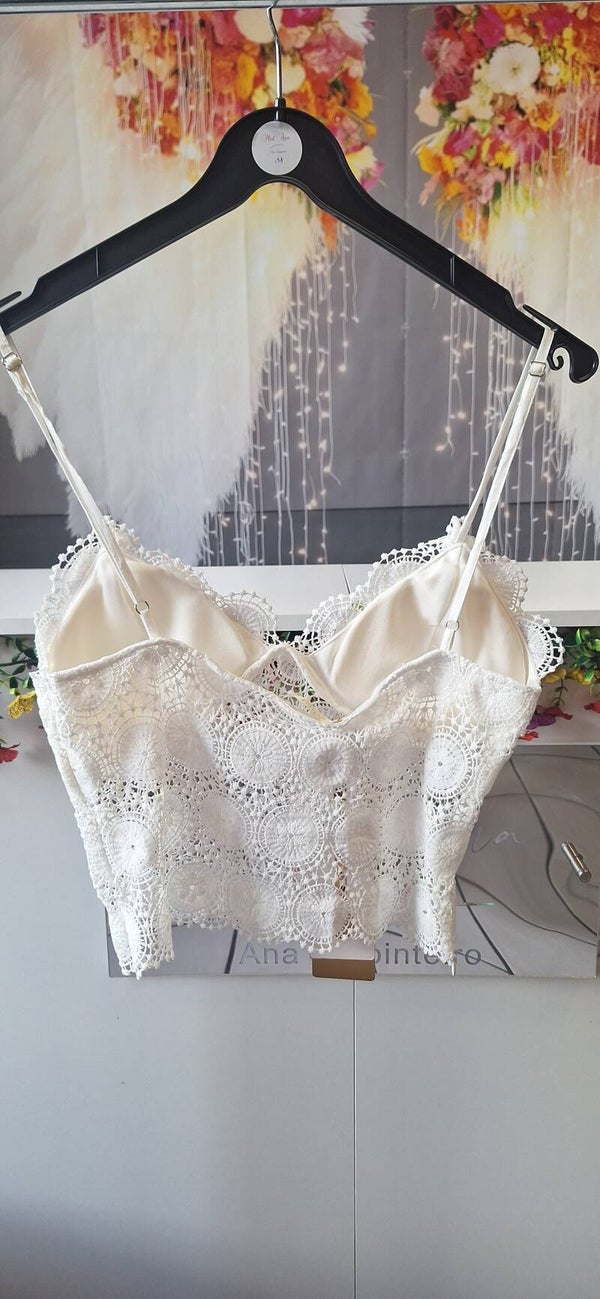 Top court en dentelle, au style très sensuel, avec rembourrage intégré pour un maintien discret. Une pièce parfaite pour un look à la fois audacieux et raffiné.